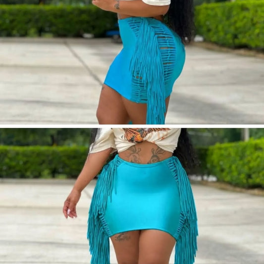 Green Tassel mini skirt